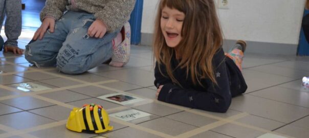 Um die Sinne zu schärfen gab es dazu abschließend viele Stationen zum Schmecken, Fühlen, Riechen, Hören und Sehen. Auch die neu eingetroffenen Beebots (Bienenroboter) wurden eingesetzt, um die Bienen vom Bild zum Wort zu programmieren. In der Sonnenklasse gab es eine Blindverkostung und auch „Das Auge trinkt mit-Station“. Im Turnsaal wurde nur geflüstert, denn hier ging es ums Sehen und Hören. Beim Blindenparcours und beim Trichterhören konnte das Vertrauen überprüft werden. Es konnte auch ein Lesezeichen in der Blindenschrift hergestellt werden. Und es gab noch mehr, wie auf den Bildern zu sehen ist.