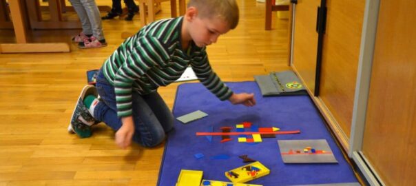 In der Planetenklasse entstand als Einführung ein gemeinsames symmetrisches Bild, das von einigen Kindern in der Pause weitergelegt wurde.