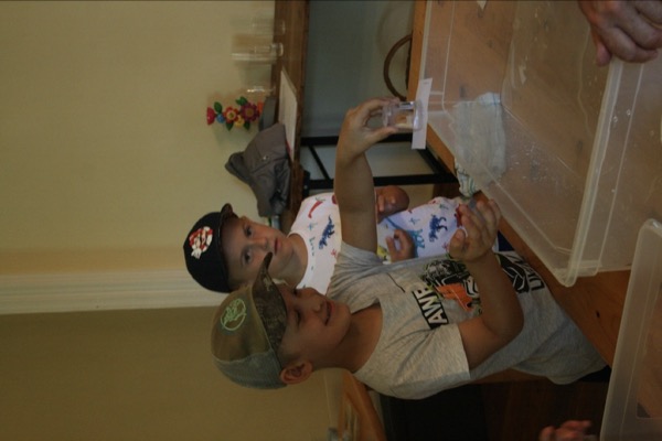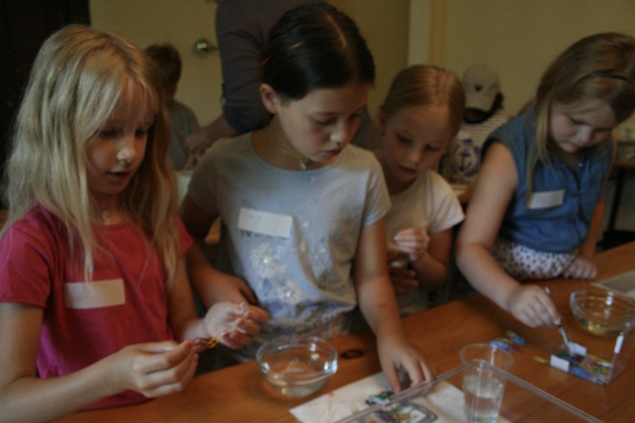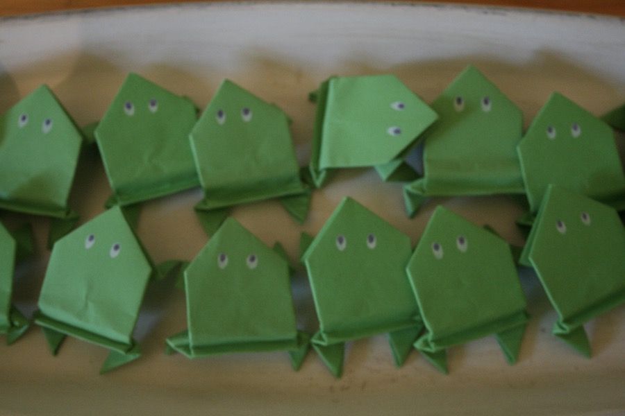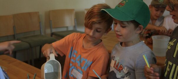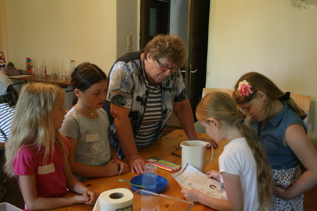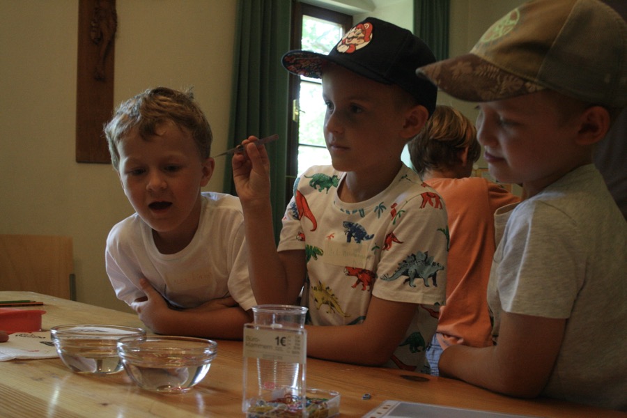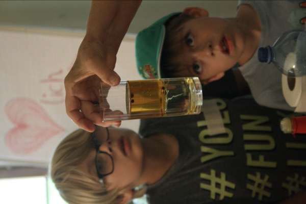 Weiters folgten Versuche zur Materie Wasser in und zur Erinnerung an das Bilderbuch gab es für jedes Kind einen selbst gebastelten Hüpffrosch zum Mitnehmen.