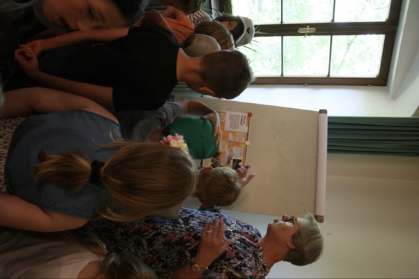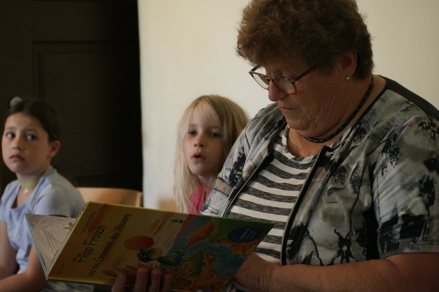 Unser Besuch wurde ganz unter das Motto „Wasser“ gestellt. Beim Vortrag aus dem Kinderbuch „Filipp Frosch und das Geheimnis des Wassers“ gingen die Kinder gemeinsam mit dem Frosch auf eine Reise um die Welt, um zu ergründen, wo das viele Wasser herkommt.