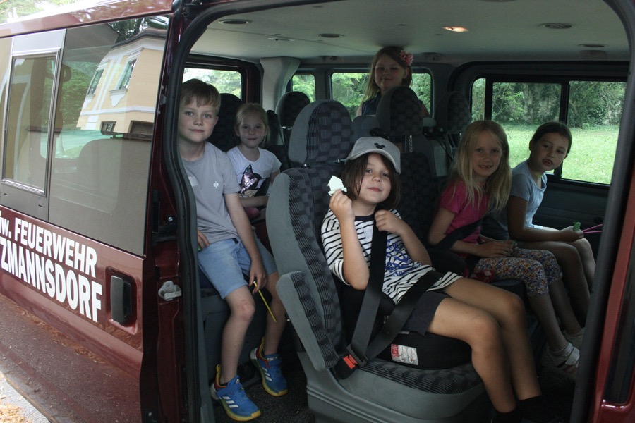 Nach der zweiten Stunde wurden die 1./2. Lg. von zwei Feuerwehrmannschaftsautos zur Pfarrbibliothek nach Patzmannsdorf gebracht, wo wir bereits von drei engagierten Damen aus dem Bibliotheksteam erwartet wurden. Fasziniert über die reichhaltige Auswahl an Büchern und Spielen und viele Kinder begannen die Kinder, gleich drauf los zu schmökern.