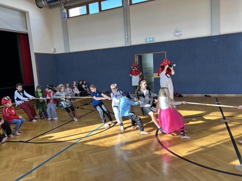 Im Anschluss gab es von den Kindern für die Kinder noch Stationen im Schulhaus, wo die Kinder den Faschingsdienstag in der Schule ausklingen ließen.